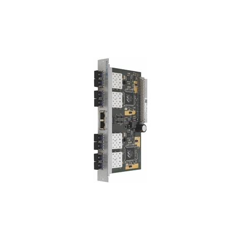 Модуль имеет 8 подключений для оптоволоконного кабеля (Multimode - расстояние до 2 км; Singlemode - до 10 км) и 2 LAN-интерфейса Ethernet 10/100 Base TX с резервированием портов.